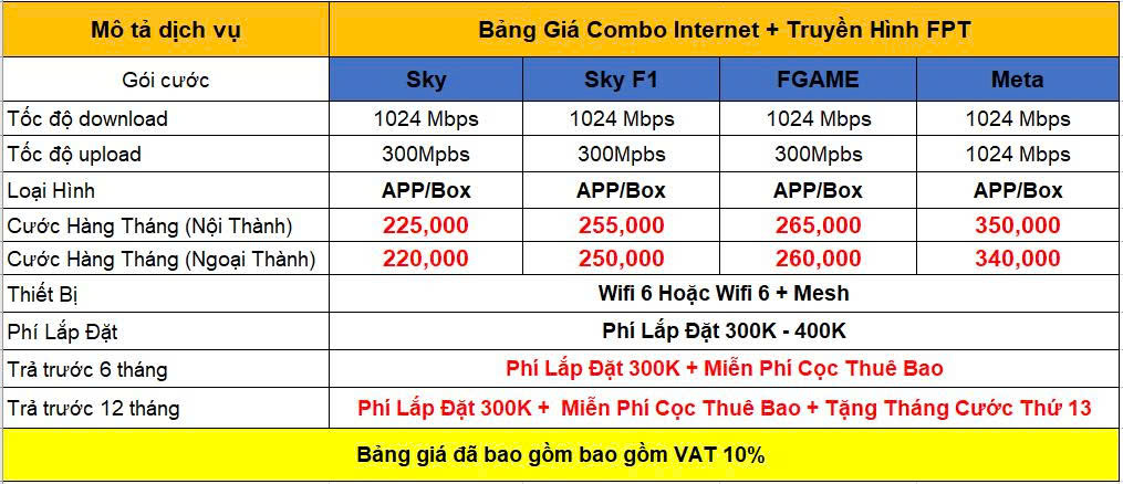 – Gói combo cơ bản: Internet + Truyền Hình 4K Ultra HD chỉ từ 220.000đ/Tháng
